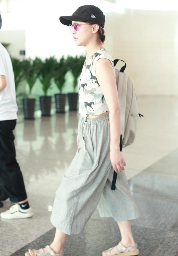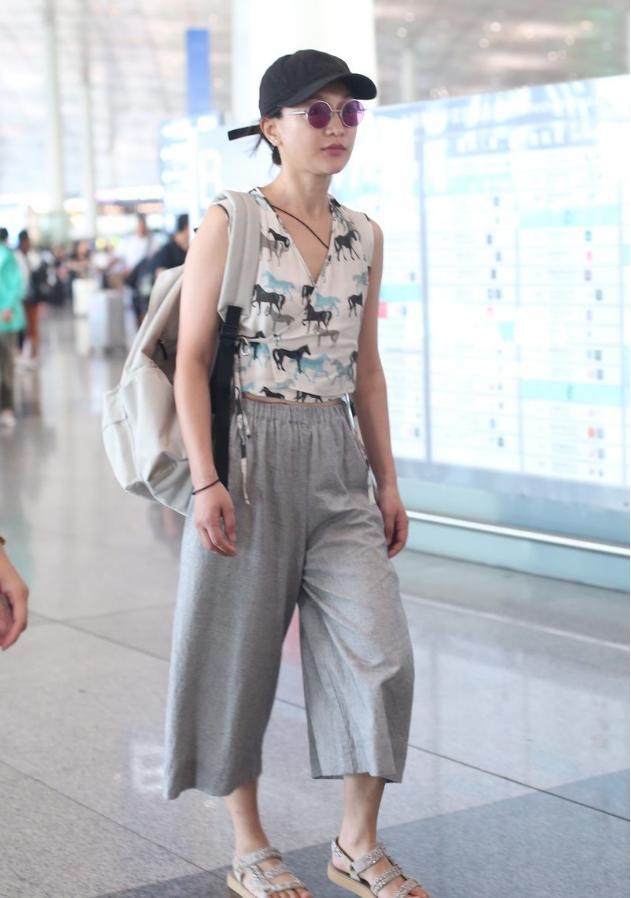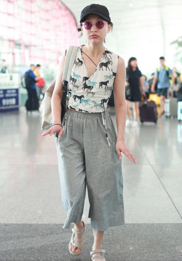 上身是一白色的搭配看上去就很休闲,尤其我们也马上迎来了夏季搭配上一件无袖的上衣简直就就是最凉快不过了!虽然看上去比较的简朴,但是却带有一点露脐装的效果也比较的性感。下身搭配了一款灰色的款式松垮的阔腿裤不仅可以修饰我们的双腿更是十分的凉快,简直就是夏天的首选裤装。这件阔腿裤也是7分裤,但是有个缺点就是让周迅的身材有点五五分的既视感。灰色在日常搭配中也是最为舒适的一种颜色搭配起来丝毫不费功夫
