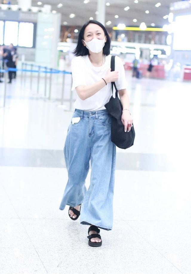 这次的搭配周迅看上去十分的凉爽,白色搭配着蓝色的牛仔裤简直就是宝藏搭配。随性但是也不缺少周迅的个性,这次搭配的牛仔阔腿裤虽然很宽松但是可以看出周迅的身材轮廓也是很巧妙的搭配