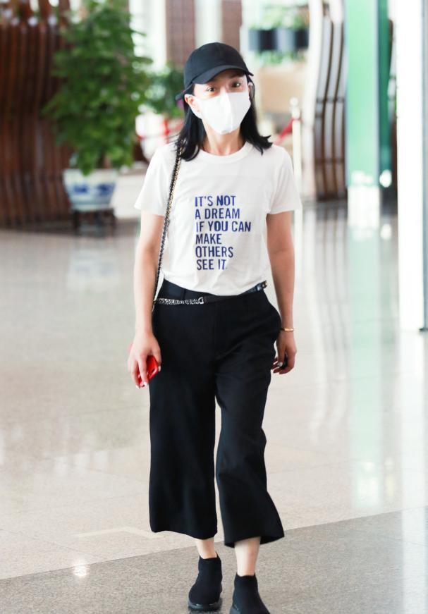 经典的黑白配色,这次的周迅很不一样。黑色的阔腿裤上带有着很有个性的裤链,颇为时尚的同时很比较的霸气。虽然只是简单的T恤衫搭配阔腿裤但是依旧那么的迷人。周迅的私服真的很低调,总是可以有自己的见解。那么这样的搭配我们一定不要错过
